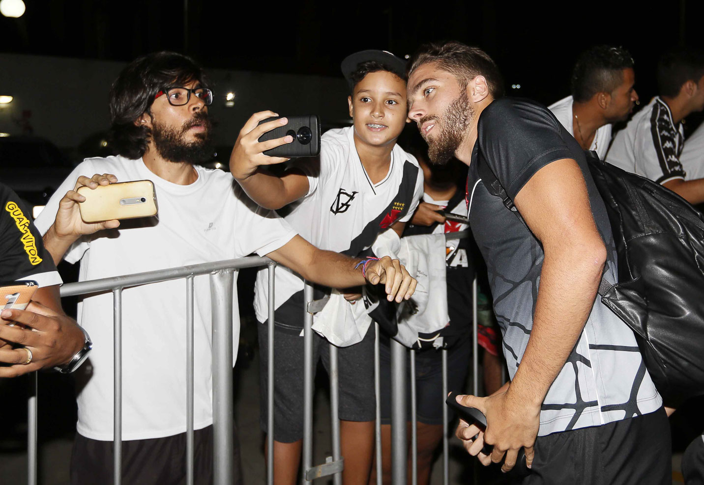 Como já é de costume, o Vasco mais uma vez foi recebido com festa por seus torcedores. Essa situação é comum quando o time joga fora do Rio de Janeiro. Mais de 100 vascaínos receberam o elenco na chegada ao aeroporto de Vitória, no Espírito Santo. O Cruzmaltino enfrenta amanhã, a Cabofriense, às 16h, no Kleber Andrade. O volante Raul, em entrevista ao site oficial do clube, espera retribuir o carinho com a conquista dos 3 pontos.