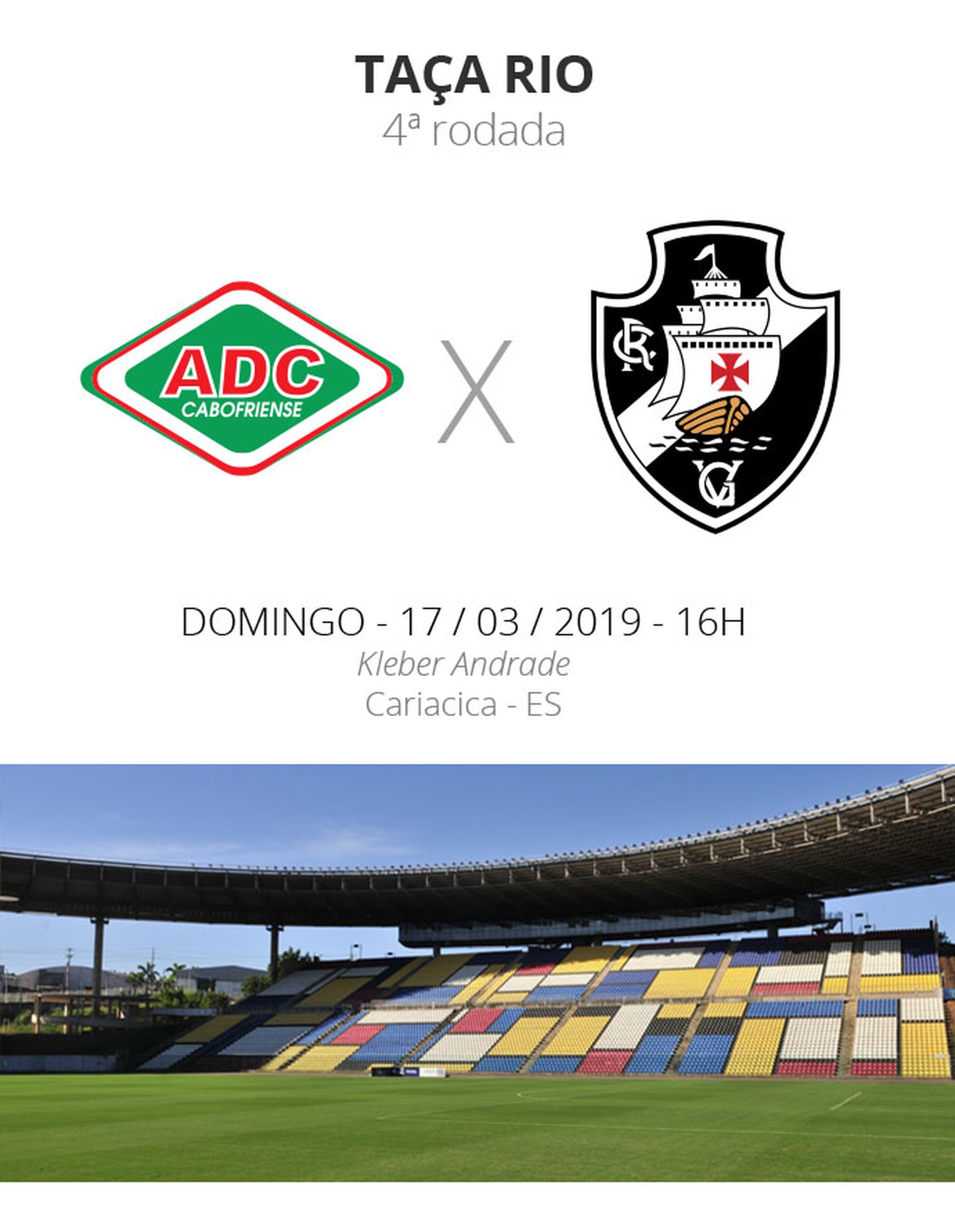 Em busca de uma vaga na semifinal da Taça Rio, Cabofriense e Vasco se enfrentam neste domingo, às 16h (de Brasília), no estádio Kleber Andrade, em Cariacica, no Espírito Santo. A partida será válida pela quarta rodada da competição, terá transmissão da TV Globo e será acompanhada em Tempo Real pelo GloboEsporte.com.
