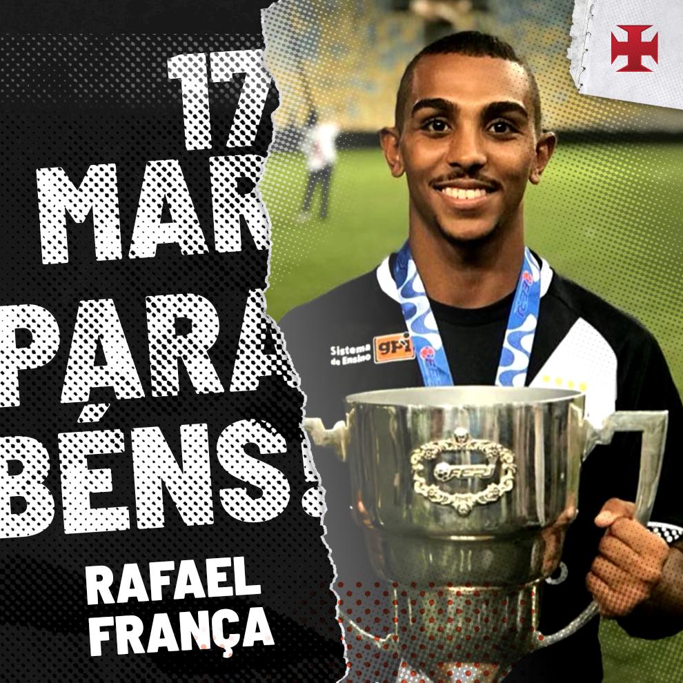 Em rede social, Vasco parabeniza o lateral Rafael França, aniversariante do dia
