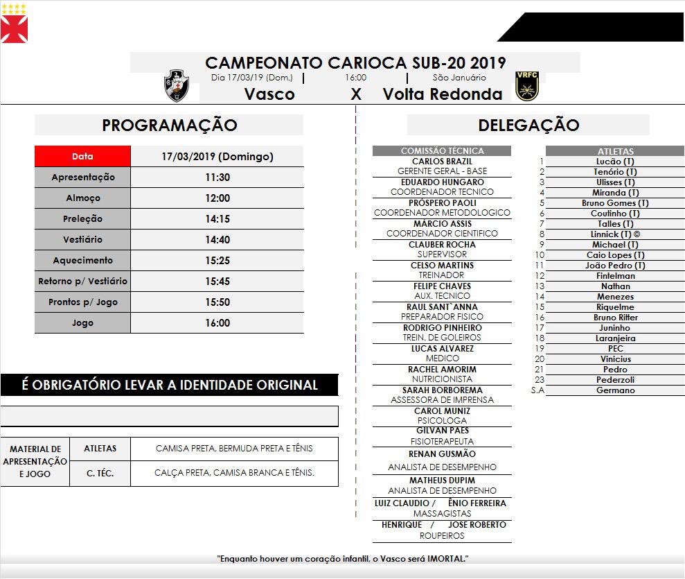 Juniores: Veja a escalação do Vasco para o jogo contra o Volta Redonda pela Taça GB Sub-20