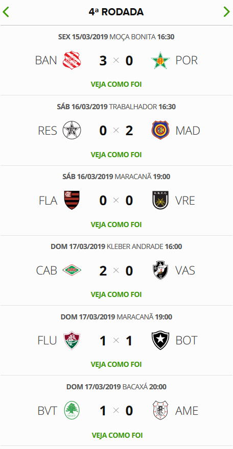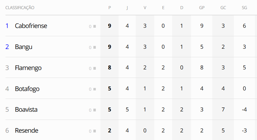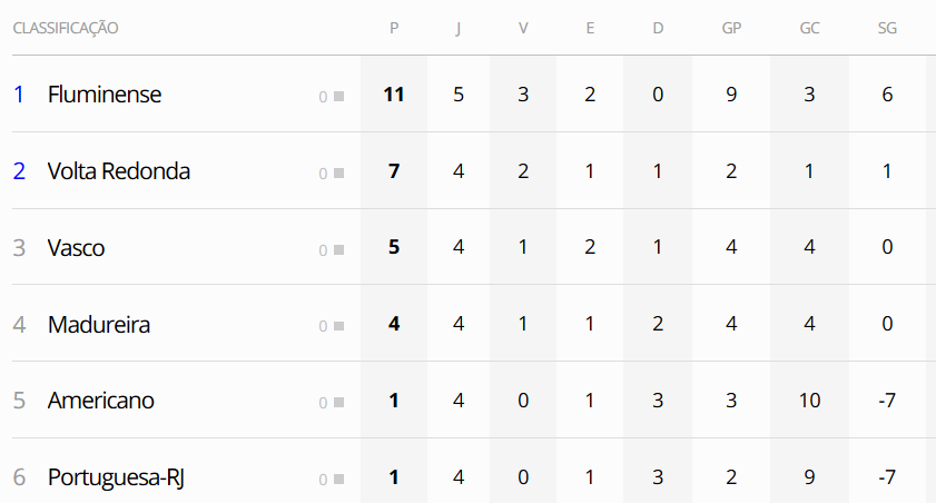 Ao fim dos jogos da 4ª rodada da Taça Rio, o Vasco, que perdeu para a Cabofriense por 2 a 0, segue em 3º lugar no Grupo A e a 2 pontos do vice-líder Volta Redonda. O Vasco está fora da zona de classificação para as semifinais da Taça Rio. Na classificação geral, o Vasco caiu da 2ª para a 3ª colocação.