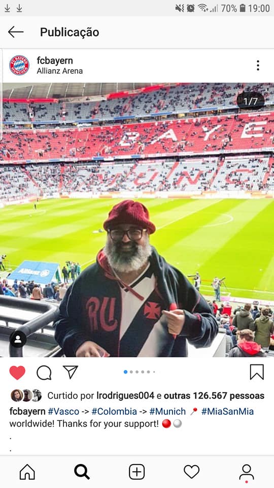 Pra sua surpresa o Instagram oficial do Bayern publicou sua foto com a hashtag #Vasco.