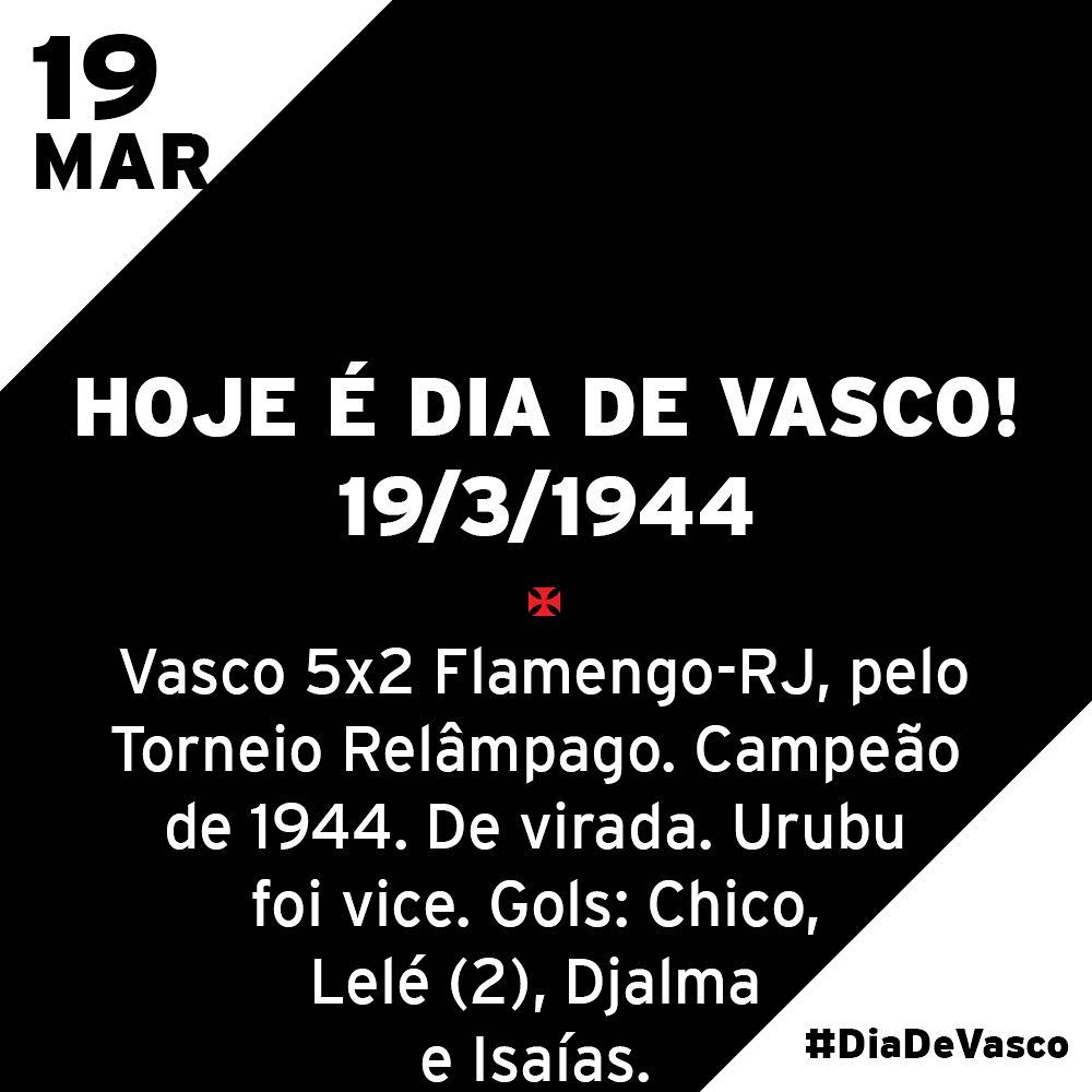 Hoje é dia 19 de março. Dia de título. Contra o Flamengo. De virada. Com goleada. Urubu foi vice! É mole ? Quer mais? Aqui tem: www.kickante.com.br/livrovasco ❤️