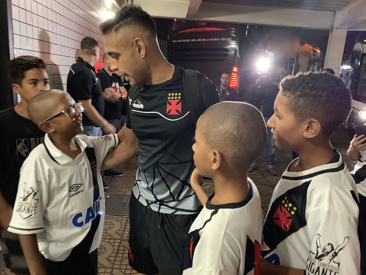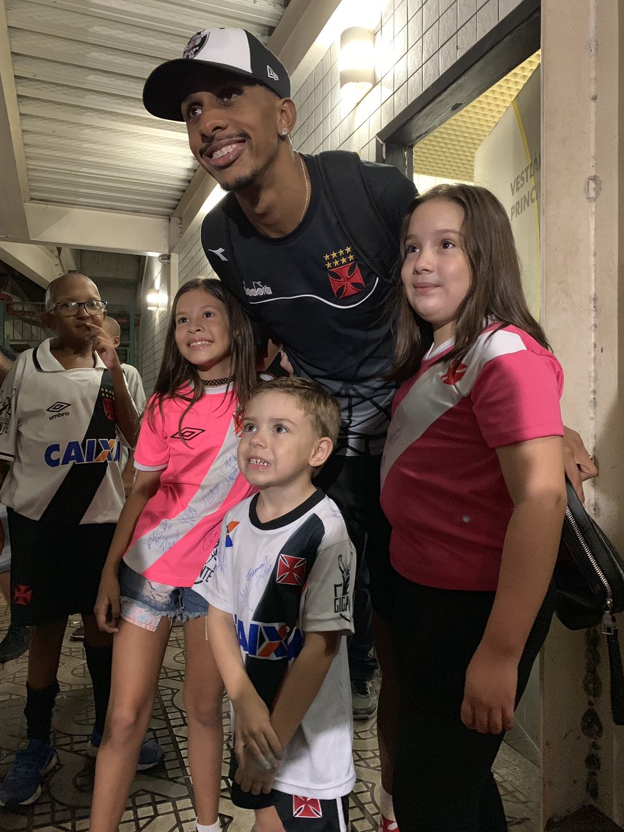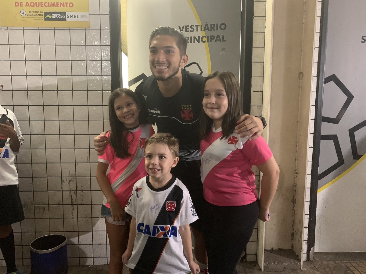 Pequenos vascaínos tiram fotos com Andrey na porta do vestiário #gevas
