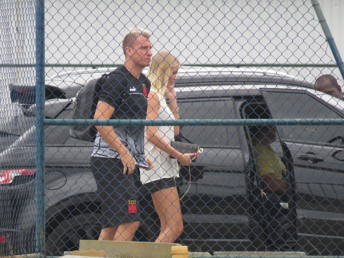 Tá mal de carona o Maxi? Foi trazido para o treino pela namorada, Daniela. #gevas