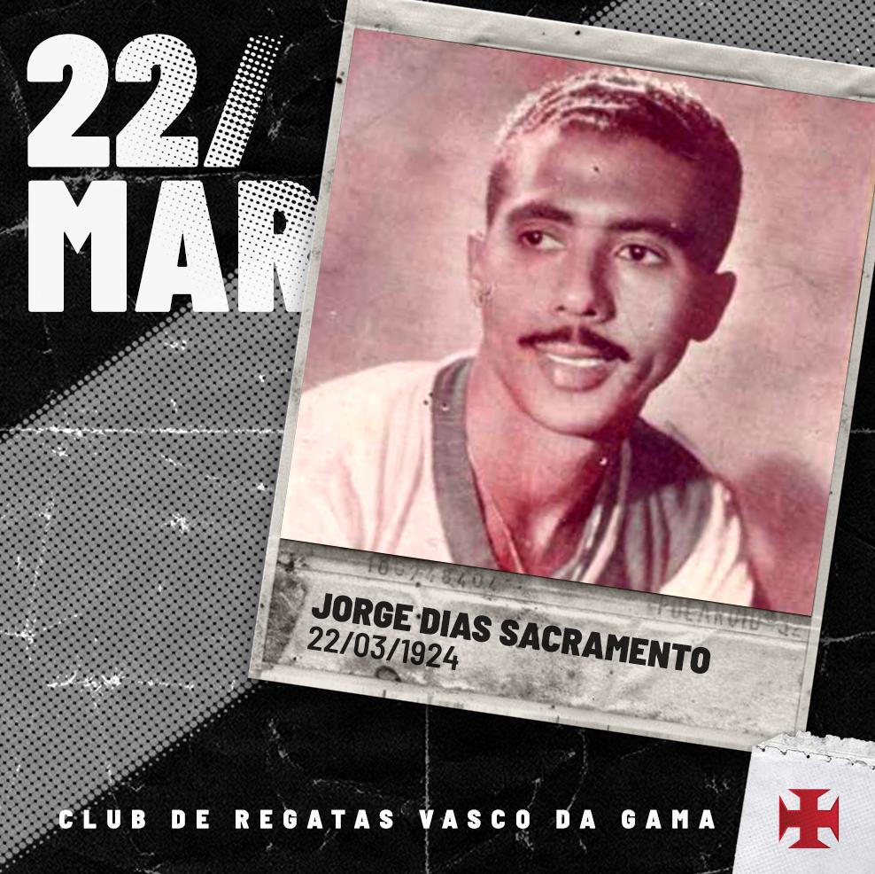 Há 95 anos nascia o craque Jorge! Lateral esquerdo de origem, compôs a linha média mais famosa do futebol brasileiro, com Eli e Danilo. Defendeu as cores do #VascoDaGama por quase toda a carreira (46-54) e conquistou, dentre outros títulos, o Sul-americano de 48 e 4 Cariocas.