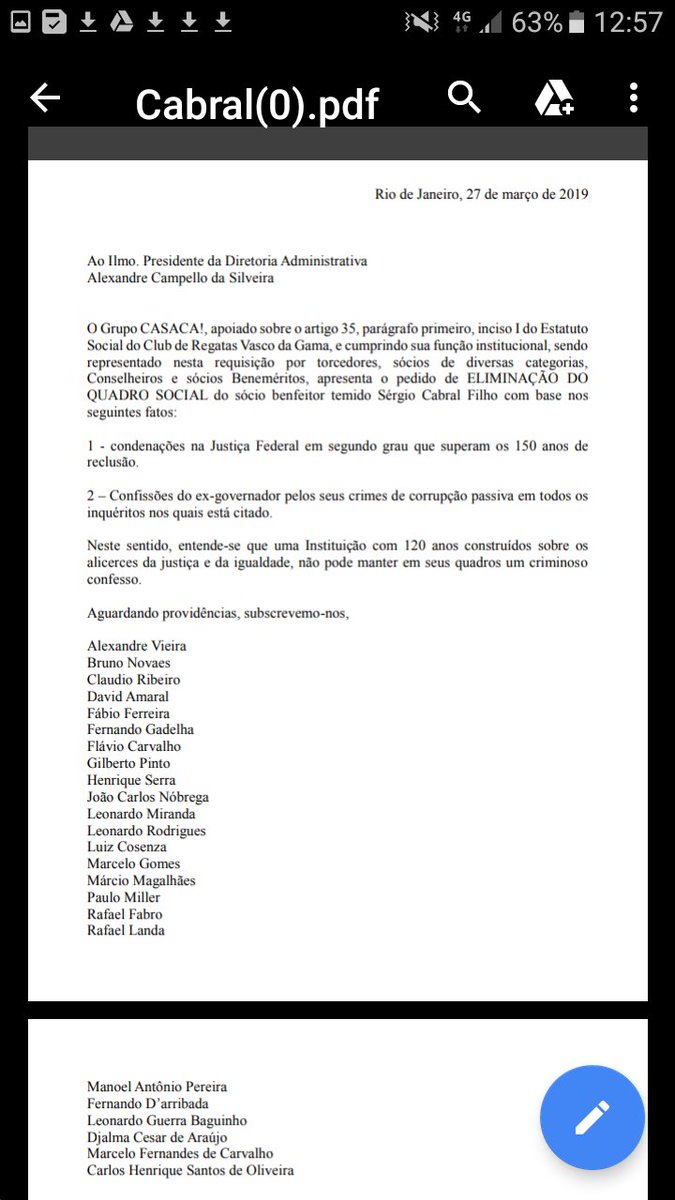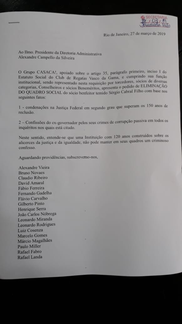 Guilhotina: Grupo CASACA! pede a exclusão de Sérgio Cabral Filho do quadro social do @vascodagama.