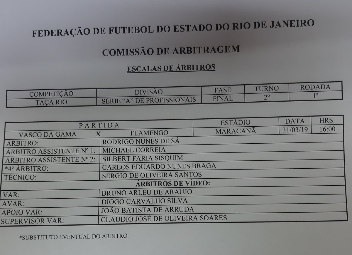 Os árbitros para a decisão da Taça Rio: @VascodaGama x @Flamengo, neste domingo, às 16h, no Maracanã.