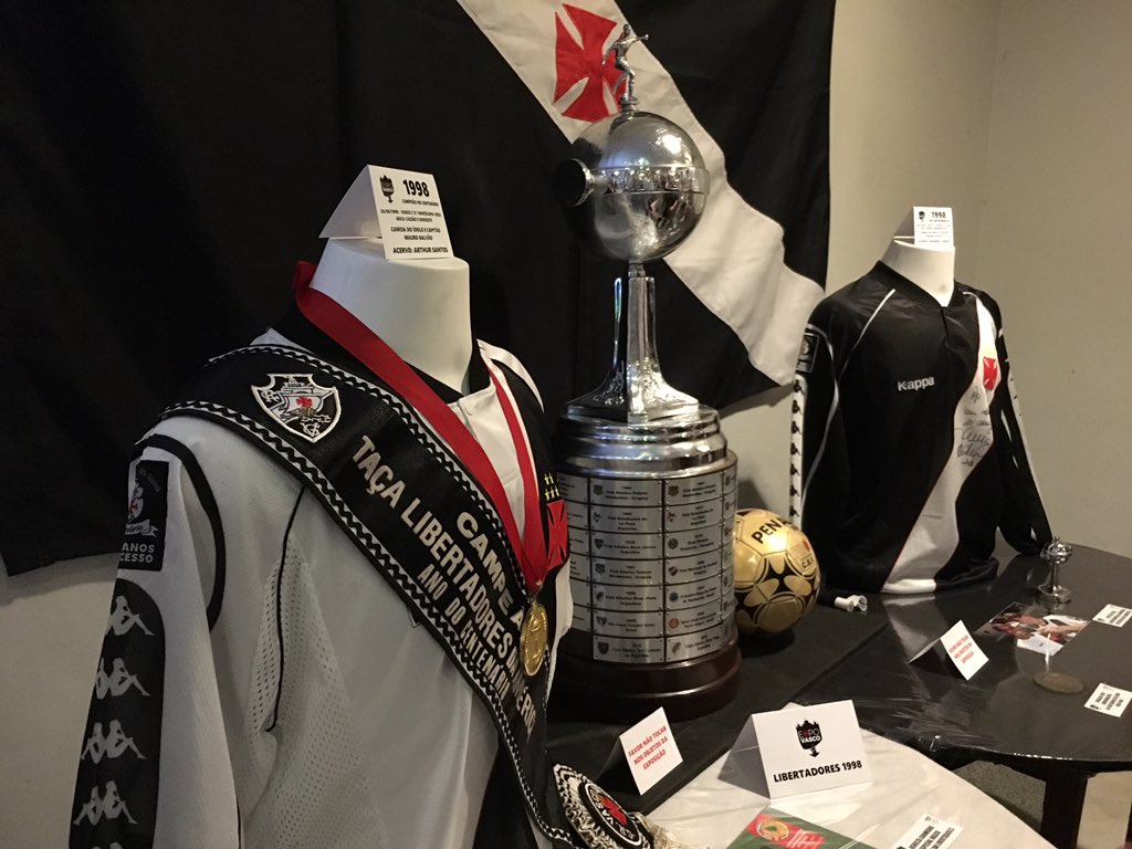 Primeira passada aqui pelas camisas da Libertadores em 1998, além de uma réplica da Taça. Ingressos das finais também expostos.