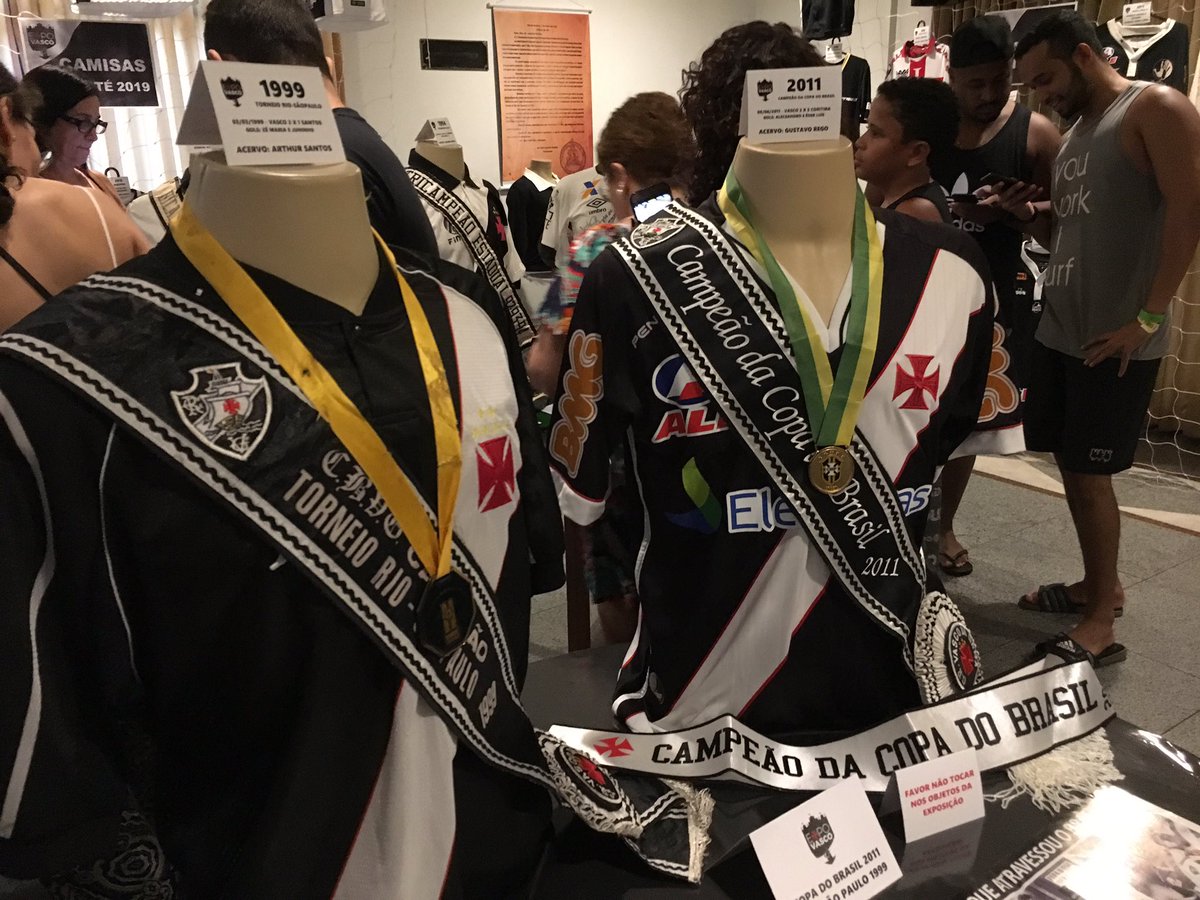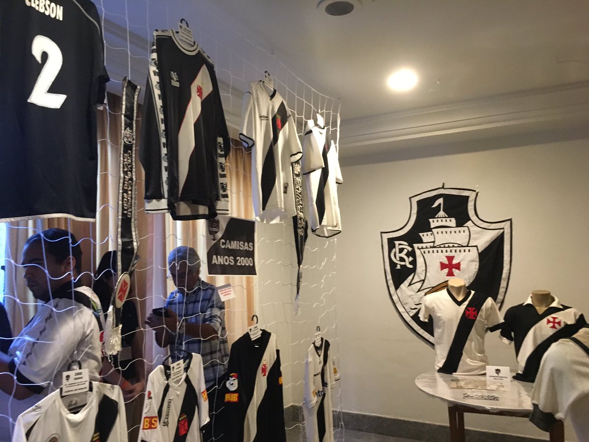 Camisas expostas já na entrada. Trabalho muito bem feito. Vale a pena vir ainda. #FutebolzinhoVasco