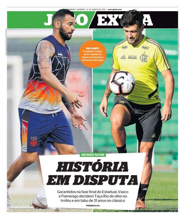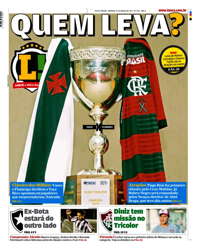Vasco e Flamengo decidem a Taça Rio 2019 na tarde deste domingo, no Maracanã. Veja como a imprensa destaca a final: