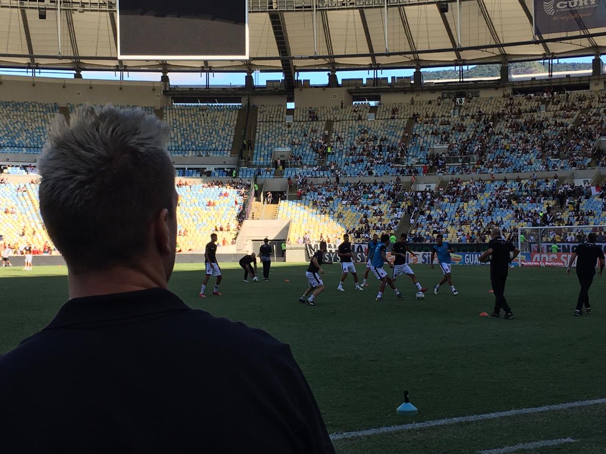 Maxi López acompanha o aquecimento dos jogadores do Vasco no Maracanã; veja foto
