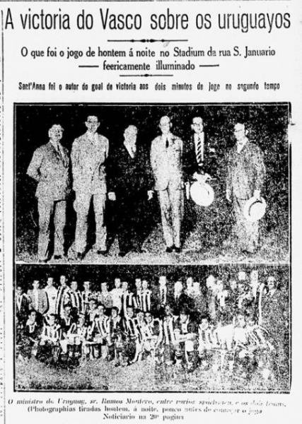 Há 91 anos, o Vasco inaugurava arquibancadas atrás do gol e refletores de São Januário na vitória por 1 a 0 contra o Montevideo Wanderers, do Uruguai. O gol vascaíno saiu direto da cobrança de escanteio de Sant'Anna, marcando o primeiro gol olímpico no Brasil.
