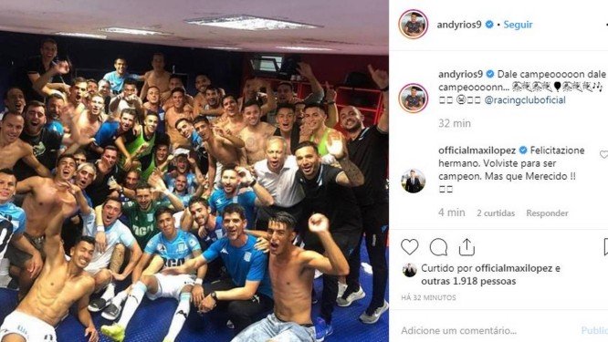 Dispensado pelo Vasco no fim do ano passado, Andrés Ríos comemorou o título do Campeonato Argentino neste domingo. Afinal, ele joga pelo Racing, que conquistou o troféu com uma rodada de antecipação, ao empatar com o Tigre por 1 a 1 .