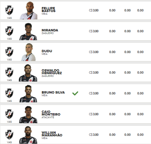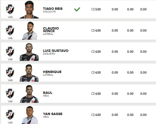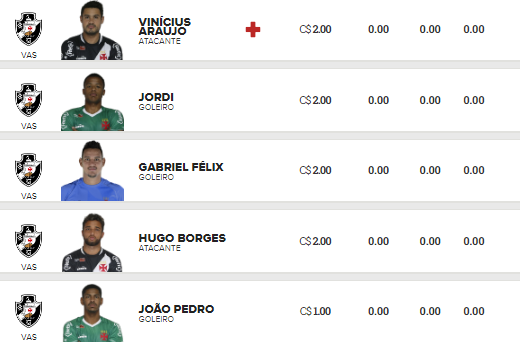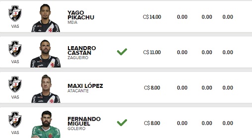 Yago Pikachu é o jogador mais caro do Vasco e custará C$14.00.