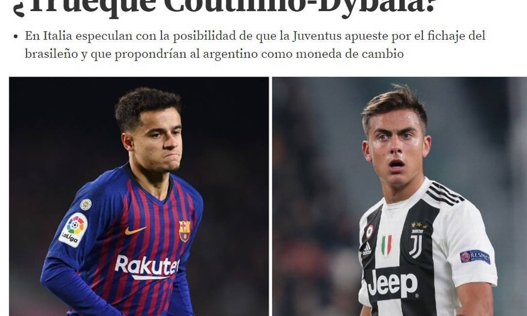 Segundo o 'Mundo Deportivo', o site italiano 'Calciomercato' assegura que o clube de Turim está interessado em Coutinho. E, para abaixar o preço da negociação, os italianos estariam dispostos a envolver uma troca pelo atacante argentino Dybala, que está em baixa após a chegada de Cristiano Ronaldo.