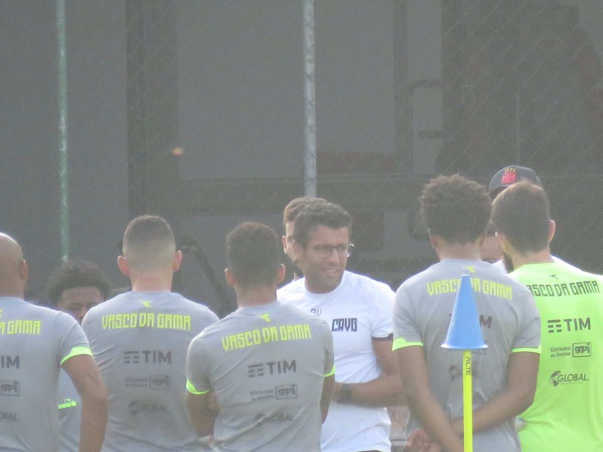 Valentim conversa bastante com os jogadores antes do treino. #gevas