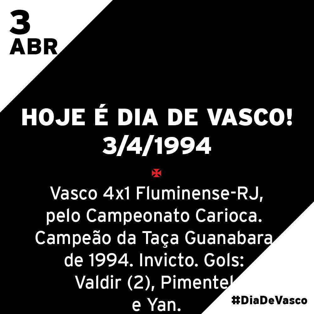 3 de abril também é dia de título! Nesta data, em 1994, o Vasco goleou o Fluminense e conquistou a taça Guanabara na campanha que levou o Club ao seu inédito tricampeonato estadual. O atacante Dener, aniversariante do dia anterior, simplesmente acabou com o jogo ! #diadevasco #crvg #vascodagama #vasco #futebol #saojanuario #gigantedacolina #globo #associavasco #futebol #crvasco #timedavirada #cruzmaltino #meucaldeirao #vascaino #vascaina
