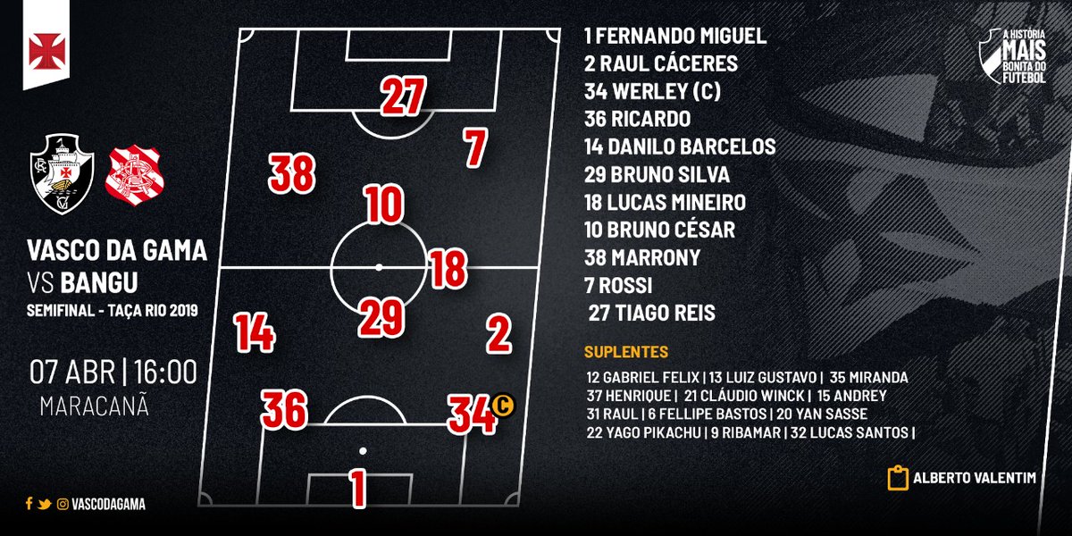 07/04/19 - Confira os desfalques de Vasco e Bangu para a semifinal do Estadual