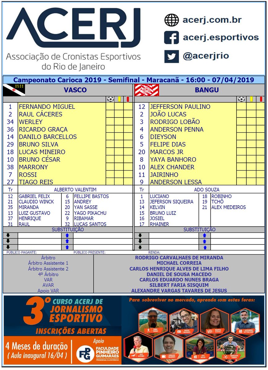 Escalações de Vasco e Bangu pela Semifinal do Campeonato Carioca 2019 no Maracanã #acerjinforma #VASxBAN #cariocão2019 #omaischarmoso #omaisvisto