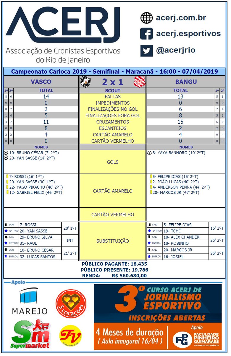 Scout Final de Vasco e Bangu pela Semifinal do Campeonato Carioca 2019 no Maracanã #acerjinforma #VASxBAN #cariocão2019 #omaischarmoso #omaisvisto