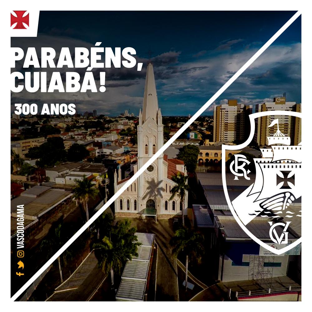 Em rede social, Vasco parabeniza Cuiabá pelos seus 300 anos