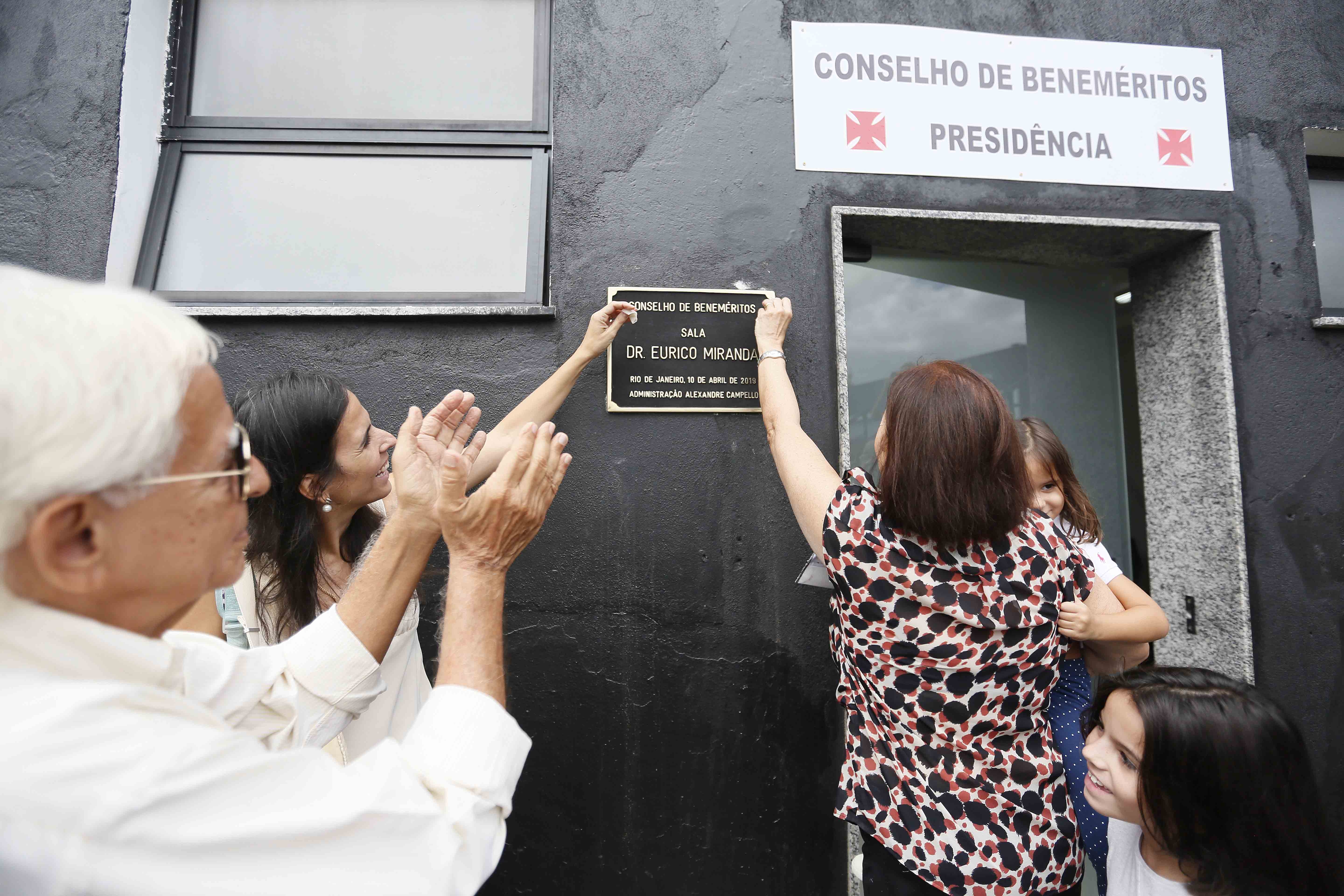 Após a celebração da missa, todos os presentes foram até a sala da Presidência do Conselho de Beneméritos, último cargo de Eurico Miranda no Club de Regatas Vasco da Gama. Lá, foi inaugurada uma placa que dá o nome do ex-Presidente para o local. A esposa Sylvia foi quem puxou a bandeira do Vasco que deu espaço ao nome do marido. Além dela, os filhos Eurico Brandão, Mário Ângelo e Sylvia Miranda, além de alguns netos, estiveram presentes na solenidade.