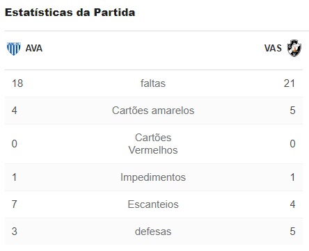 Confira estatísticas de Avaí 0 x 1 Vasco