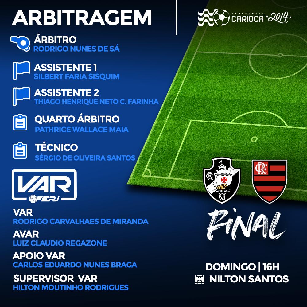 Arbitragem da primeira partida da decisão do Campeonato Carioca de 2019: @VascodaGama x @Flamengo, neste domingo, às 16h, no Estádio Nilton Santos.
