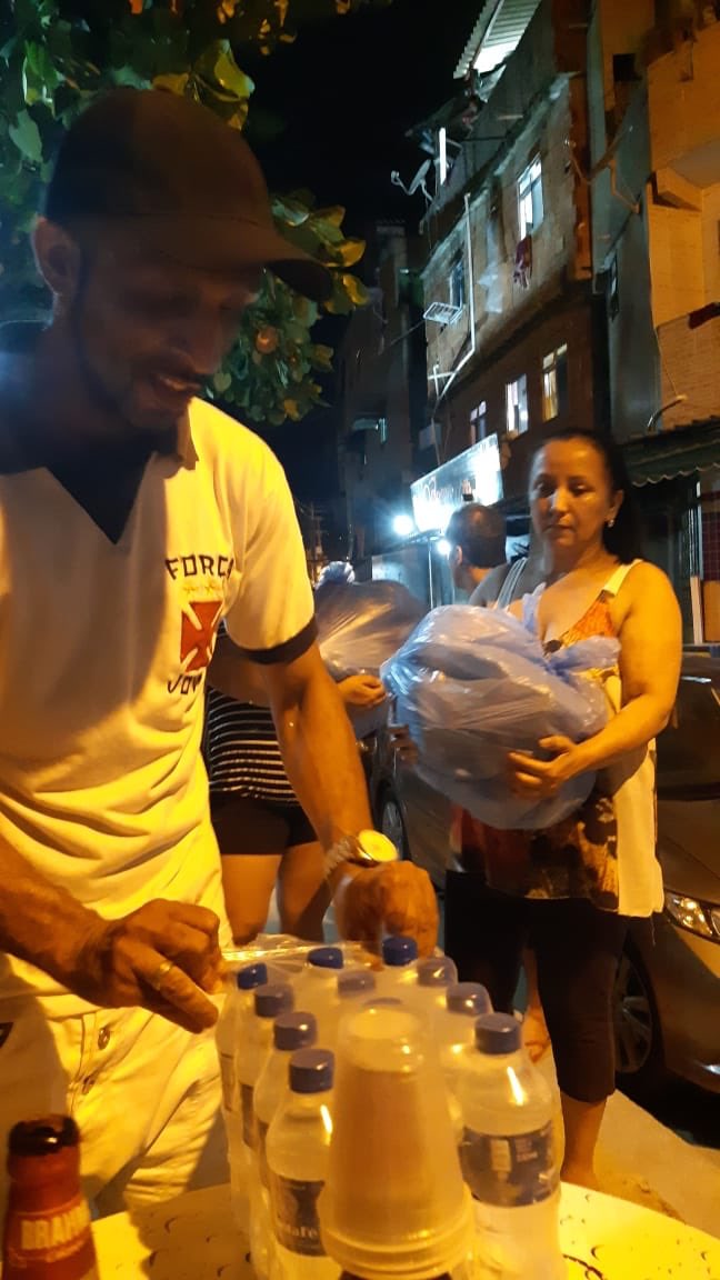 Distribuição de cestas com água mineral, produtos de limpeza, alimentos não perecíveis, fraudas e roupas em Jacarepaguá, para os moradores atingidos pelas fortes chuvas.