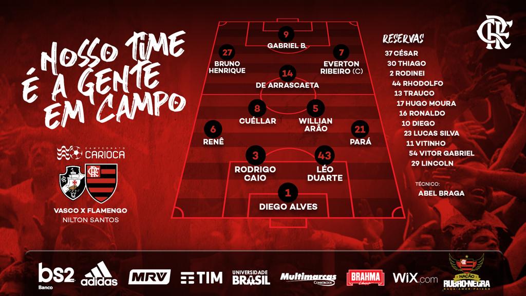 Veja a escalação do Urubu para o 1º jogo da final do Estadual contra o Vasco