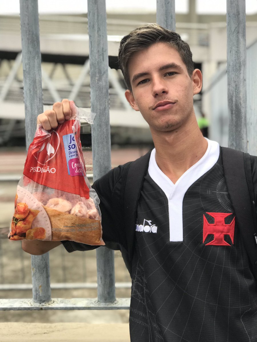 Vascaíno Thiago Koch e o saco de frango na porta do Nilton Santos |