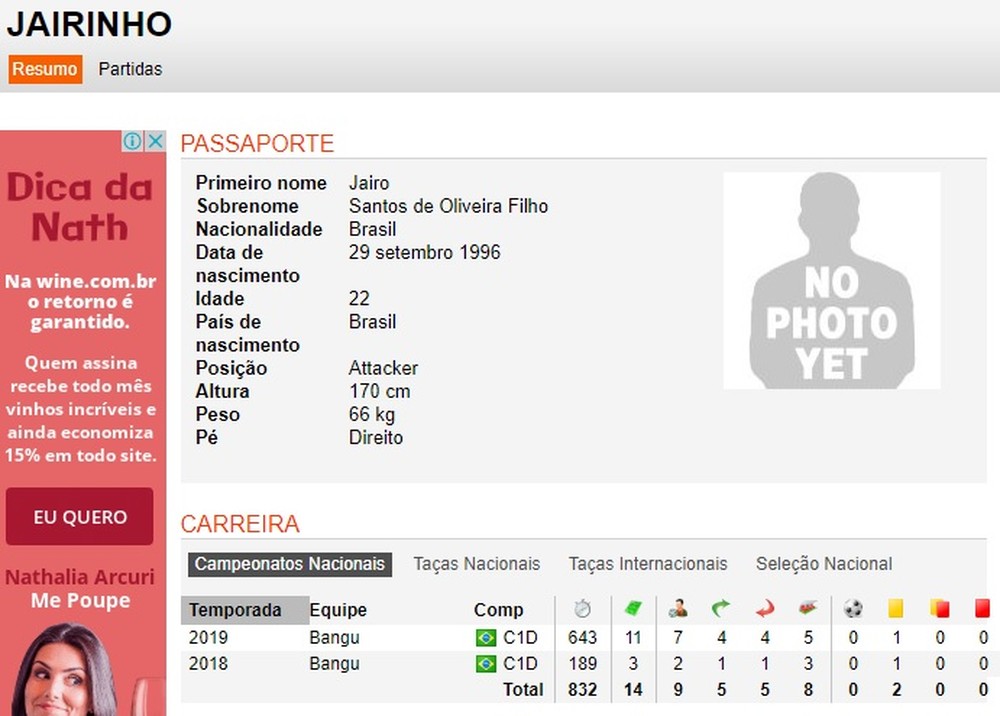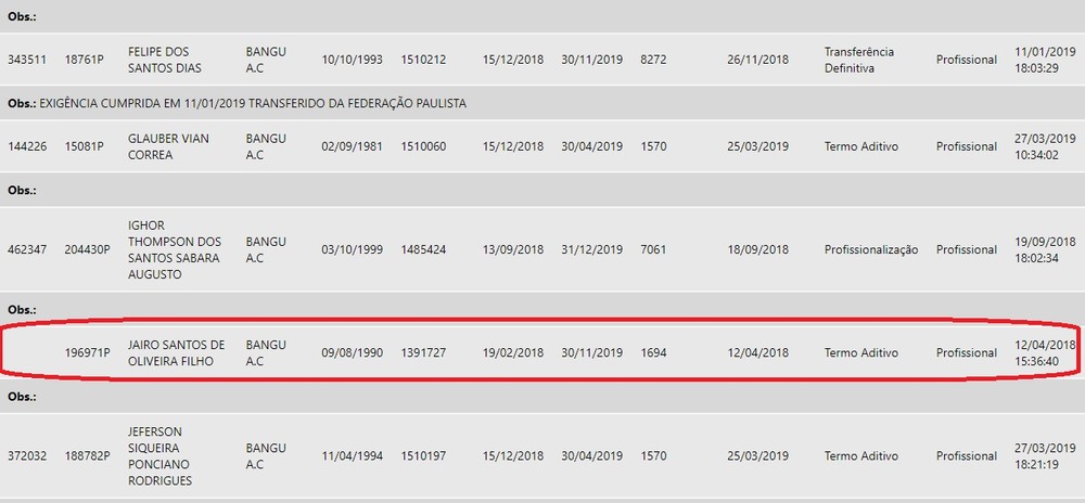 A ideia original do Vasco era fazer contrato de três anos com Jairinho, mas houve confusão sobre as primeiras informações a respeito da data de nascimento do atleta - que aparecia com 22 anos em sites informativos de futebol, mas na verdade tem 28. Veja abaixo.