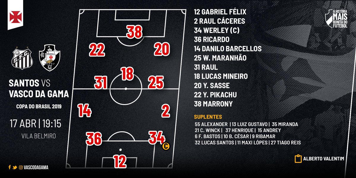17/04/19 - Elencos de Vasco e Santos têm 9 remanescentes do duelo pela Copa do Brasil de 2016