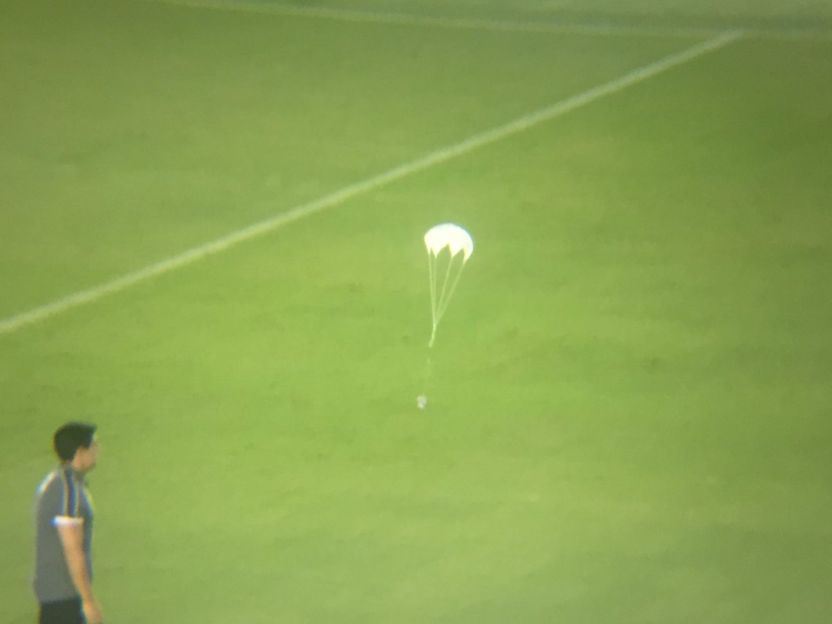 Pequeno paraquedas caiu no gramado da Vila Belmiro 🤷🏼♂️ #trvila