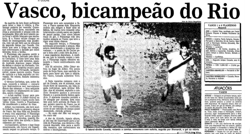 Para Bismarck, ser campeão carioca de 1988 foi mais do que uma conquista profissional. Foi ser um privilegiado torcedor capaz de criar a jogada do gol do título e levantar o troféu vencendo o maior rival no Maracanã. Um feito que desde então o Vasco busca repetir o feito e vai tentar mais uma vez neste domingo, no segundo jogo da decisão.