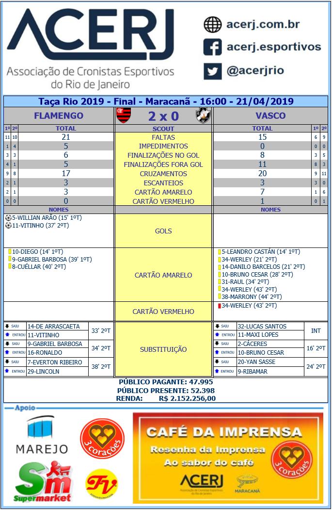 Confira as estatísticas de Urubu 2 x 0 Vasco, 2º jogo da final do Estadual