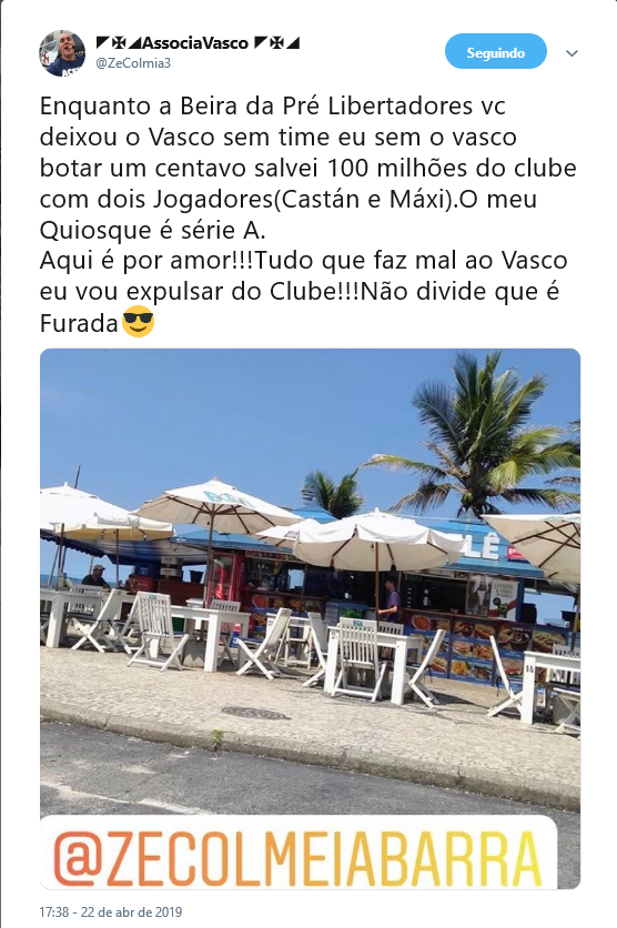 22/04/19 - Carlos Leite posta foto de quiosque afundado e escreve: 'Parece fácil né? Quem é ruim se destrói sozinho'