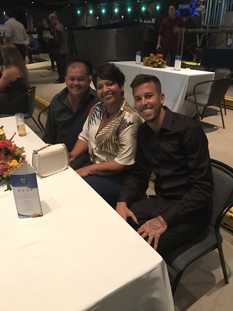 Novo reforço do Vasco, Marcos Júnior chega à premiação do Estadual com os pais; veja foto