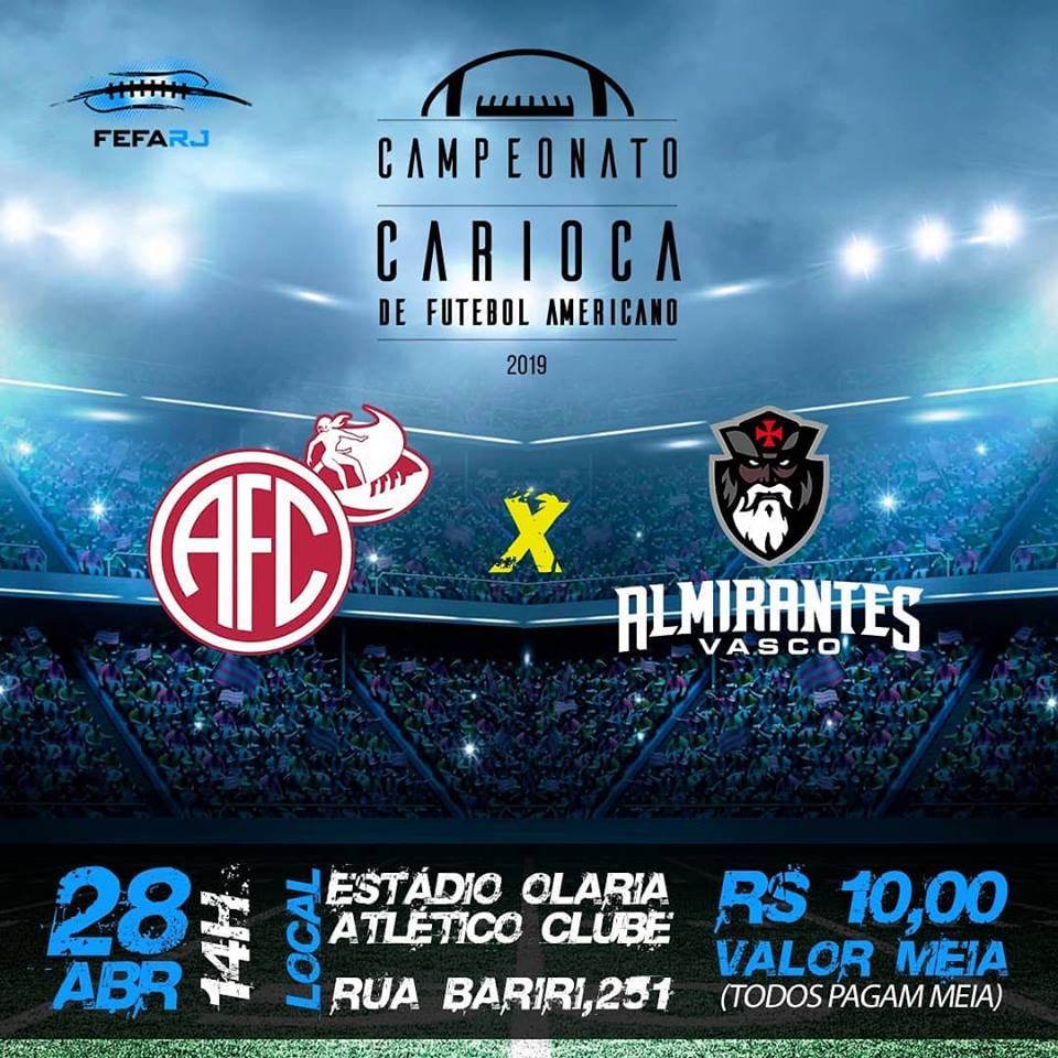 Futebol Americano: Ingressos para Vasco Almirantes x América, neste domingo, na Rua Bariri, custam R$ 10
