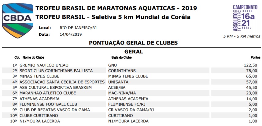 Maratonas Aquáticas: Vasco fica em 9º lugar no Troféu Brasil