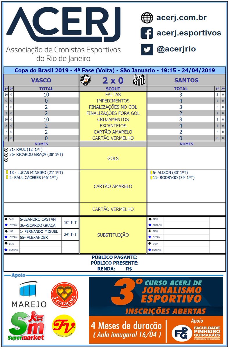 Scout do 1º Tempo de Vasco e Santos pela 4ª Fase (Volta) da Copa do Brasil 2019 em São Januário #acerjinforma #VASxSAN #CopadoBrasil2019 #CopaDoBrasil