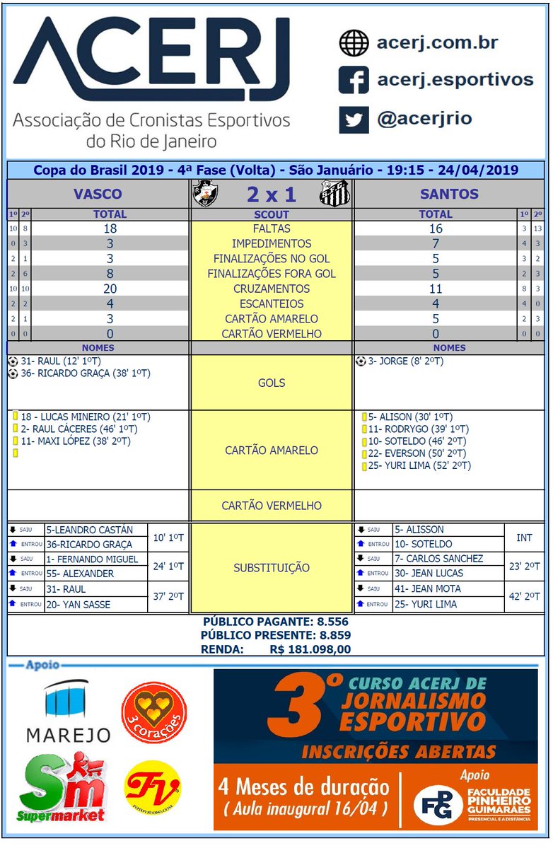 Scout Final de Vasco e Santos pela 4ª Fase (Volta) da Copa do Brasil 2019 em São Januário #acerjinforma #VASxSAN #CopadoBrasil2019 #CopaDoBrasil