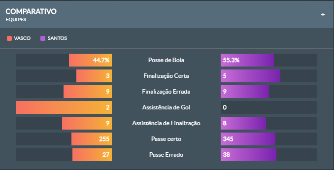 Confira as estatísticas de Vasco 2 x 1 Santos