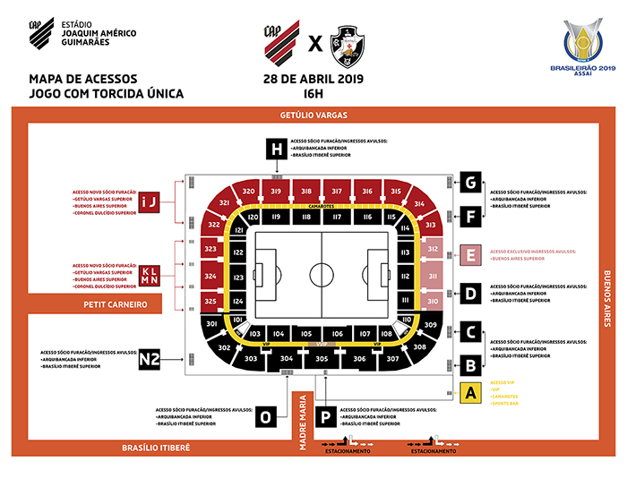 A venda de ingressos para a estreia no Campeonato Brasileiro 2019 teve início nesta quinta-feira (25), no www.ingressoscap.com.br, Disk Ingressos e Loja Mundo do Futebol. No domingo (28), o Furacão recebe o Vasco da Gama, às 16h, no Estádio Joaquim Américo.