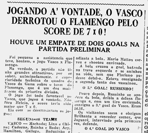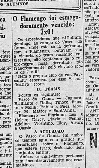 As derrotas do Flamengo para o Vasco estavam se tornando tão frequentes (de 1928 a 1931, o time cruzmaltino venceu todos os seus 8 jogos oficiais contra os rubro-negros) que a goleada histórica recebeu, nos jornais da época, um destaque que hoje seria considerado modesto.