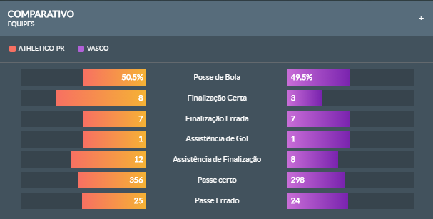 Confira as estatísticas de Athletico-PR 4 x 1 Vasco