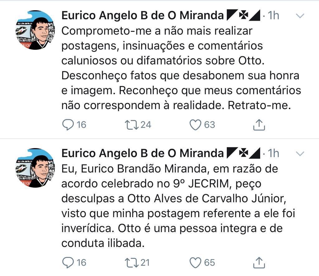 Otto Carvalho responde Euriquinho: 'O #VascoPacificado é o que precisamos pedir retratação na justiça?'
