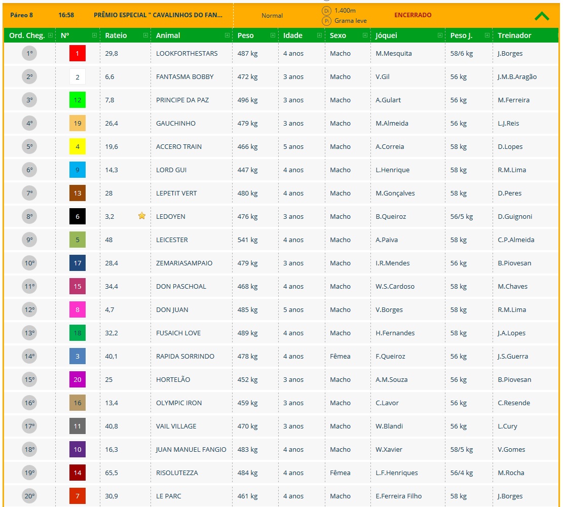 Em mais uma edição de sucesso do Prêmio Especial Cavalinhos do Fantástico, o Fortaleza (Lookforthestars) superou o Internacional (Fantasma Bobby) na "última rodada", em final emocionante. A carreira, um dos destaques da ótima reunião deste domingo, 28 de abril, no Hipódromo da Gávea, foi realizada em 1.400 metros, grama leve e reuniu os 20 concorrentes do Brasileirão 2019. Não perca, no "Fantástico", a reportagem sobre a empolgante carreira.