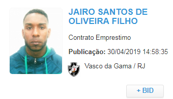 Jairinho é outro a sair no BID. Jogador também já está regularizado para estrear pelo Vasco #lanceVAS